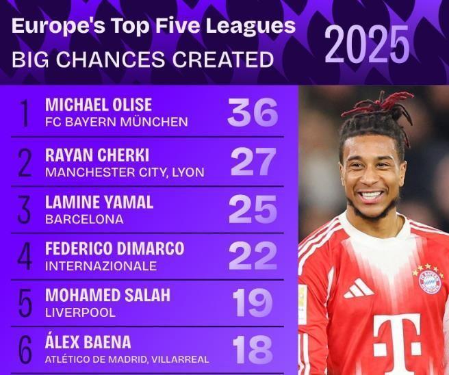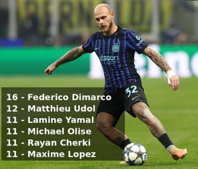 數據不會說謊,本賽季意甲賽場,迪馬爾科已送出6次助攻,領跑意甲助攻榜,並攻入2球。本賽季意甲12次首發,直接參與8粒進球,對於一名邊後衛而言,迪馬爾科這樣的進攻輸出堪稱恐怖。而將目光拉長至整個2025自然年,他在五大聯賽創造絕佳機會榜單上以22次位列第四,僅次於奧利塞(36次)、謝爾基(27次)和亞馬爾(25次),更是這份榜單前十中唯一純粹的邊後衛。