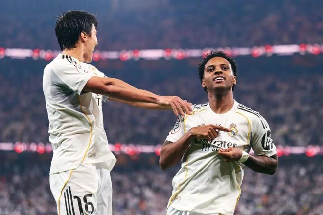 和上一次交鋒相比,皇馬首發陣容最大的不同就是姆巴佩缺席。巧的是,上一場聯賽對貝蒂斯,姆巴佩因傷缺陣,小將貢薩洛·加西亞首發打中鋒,人人各司其職的皇馬打出了賽季最佳戰役之一。本場姆總繼續缺席,阿隆索完全複製了對貝蒂斯一戰的陣容。隻是本場皇馬率先發難的不是貢薩洛,而是繼續客串右後衛的費德裏科·巴爾韋德,貝林厄姆製造任意球,巴爾韋德操刀打出久違的標誌性暴力遠射,幫助皇馬取得夢幻般開局。這也是巴爾韋德本賽季第一次在正式比賽開張。